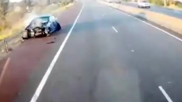 یک خودرو حین سبقت در اتوبانی در استرالیا با تریلی تصادف Crash کرد.
