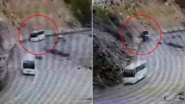 کامیون از آسمان به وسط جاده افتاد! + فیلم