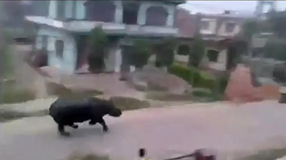 حمله اسب آبی به مردم در خیابان های نپال + فیلم