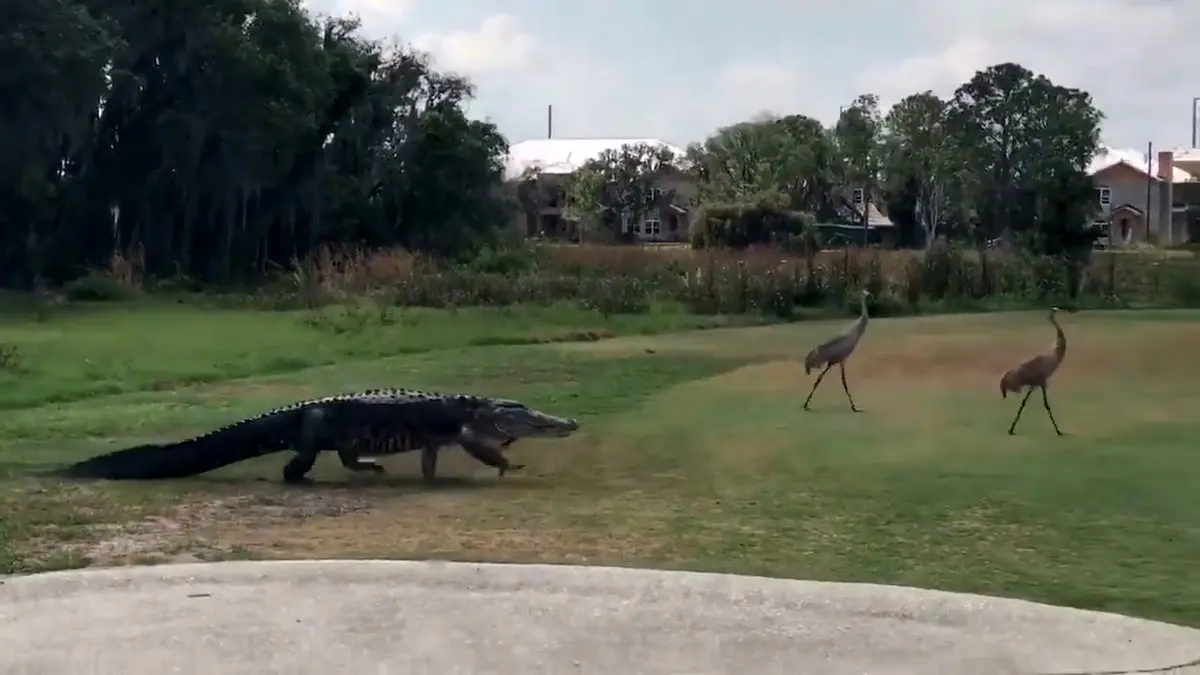قدم زدن یک تمساح در زمین گلف! + فیلم