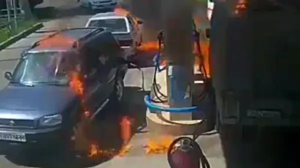 رکنا: حواس پرتی یک راننده در پمپ بنزین آتش به پا کرد.