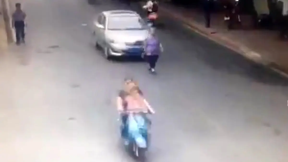 پیرزن و راننده سربه هوا وسط خیابان به هم رسیدند+ فیلم