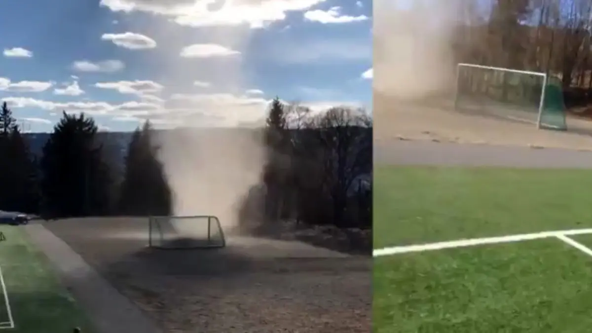 به گزارش گروه ترجمه حوادث Accidents رکنا، تصاویر منتشر شده نشان می دهد که یک گردباد وارد زمین فوتبال می شود و ابتدا وسایل و لباس های کنار زمین را با خود می برد و سپس دروازه را از جا کنده و چند متری جا به جا می کند.برای ورود به کانال تلگرام ما کلیک کنید.
