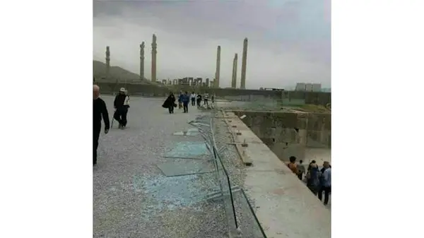 رکنا: وزش باد شدید در تخت جمشید باعث شکستن شیشه های محافظ شد.