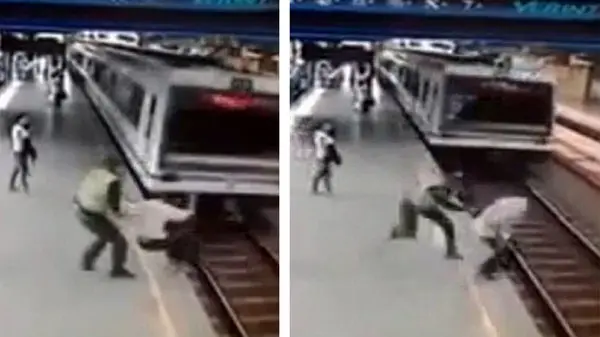 به گزارش گروه ترجمه حوادث رکنا، این پلیس که گوستاوو چاپارو(Gustavo Chaparro) نام دارد، درست یک لحظه قبل از این که مرد جوان از سکو پایین بیافتد او را نگه می دارد و قبل از اینکه قطار به او برخورد کند او را کنار می کشد.