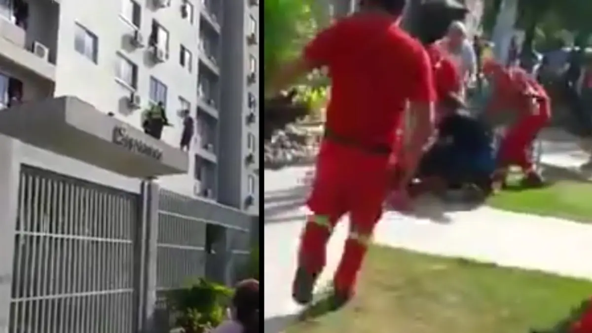 به گزارش گروه ترجمه حوادث Accidents رکنا، پسر جوانی که قصد داشت توجه نامزدش را که اخیرا با او به مشکل خورده بود جلب کند، از روی ساختمان سانتا کروز در بولیوی روی زمین شیرجه زد. تصاویر نشان می دهد که چند نفر قصد دارند او را از این کار منصرف کنند اما او دست آخر به حرف کسی گوش نمی دهد و از روی ساختمان می پرد. این مرد جوان با شکستگی کتف و آسیب خفیف گردن راهی بیمارستان شد. برای ورود به کانال تلگرام ما کلیک کنید.