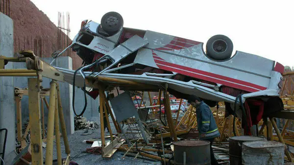 عکس عجیب از مچاله شدن یک مینی بوس در سقوط به روی میلگردها