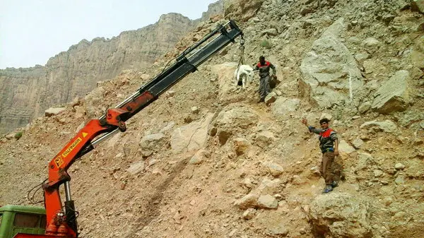 صحنه ای جالب از نجات جان یک الاغ با جرثقیل+ عکس