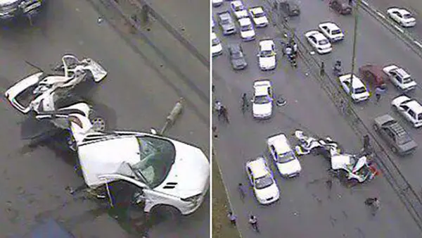 206 در اتوبان خرازی نصف شد+ فیلم و عکس