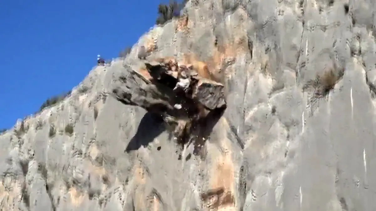 به گزارش گروه ترجمه حوادث Accidents رکنا: کوهنورد استفان بارتل(Stefan Barthel) و تیمش در حال صعود به یک قله در اسپانیا بودند که این ویدئو فوق العاده را ضبط کردند. تصاویر منتشر شده نشان می دهد که یک کوهنورد در حال بالا رفتن از یک صخره بزرگ است. هنگامی که این کوهنورد برای بالا رفتن از صخره دستش را لای یک شکاف قلاب می کند تا از آن بالا برود تکه بسیار بزرگی از این صخره کنده می شود و ریزش می کند. اما این کوهنورد سریعا خودش را کنار می کشد و از این حادثه Incident جان سالم به در می برد.برای ورود به کانال تلگرام ما کلیک کنید.