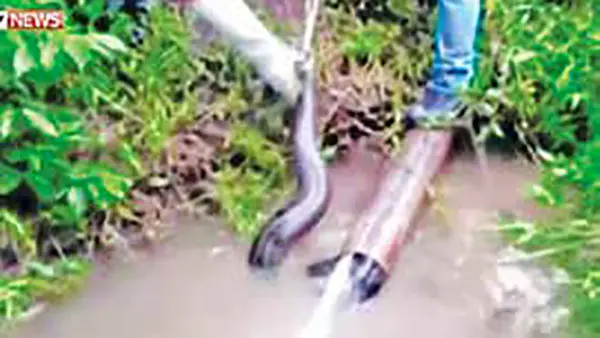 به گزارش سخنگوی گروه عملیات، این مار 4 و نیم متری که از حوضچهای کم عمق وارد لوله پلاستیکی آب شده بود، باعث اختلال در سیستم آبرسانی منطقه شده و مشکلاتی را برای ساکنان ایجاد کرده بود.با توجه به بزرگی مار و احتمال خطر، چند نفر از امدادگران با استفاده از تجهیزات ساده از چند جهت مار را گرفته و با تلاش فراوان بالاخره آن را بیرون کشیدند.برای ورود به کانال تلگرام ما کلیک کنید.