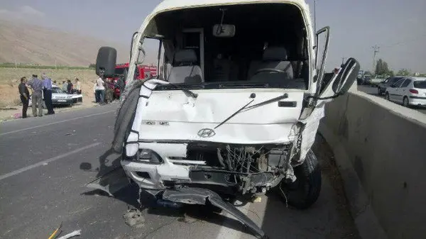 له شدن مینی بوس در تصادف با پراید در جاده شیراز! /  جسد قربانی حادثه از میان آهن پاره ها خارج شد + عکس