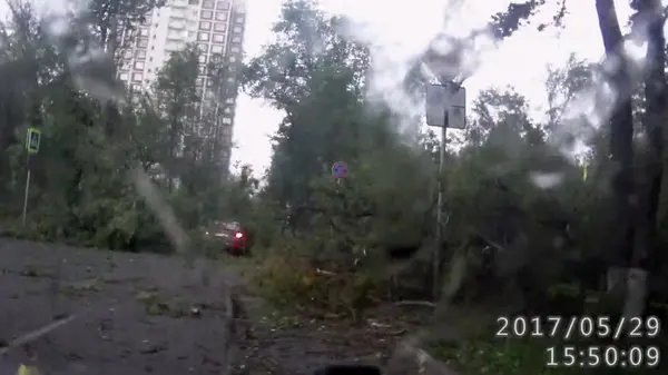 رکنا: طوفان شدید در مسکو باعث سقوط درختان روی خودروهای در حال تردد در خیابان شد.