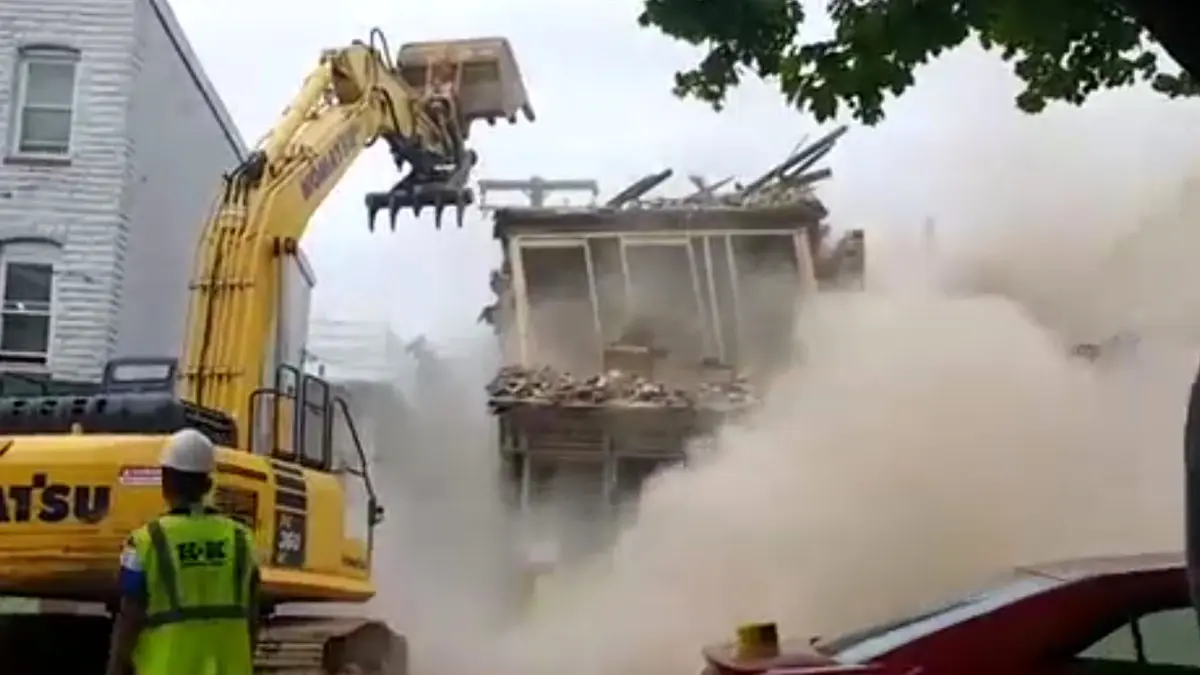بی احتیاطی وحشتناک کارگران هنگام تخریب یک ساختمان +فیلم و عکس