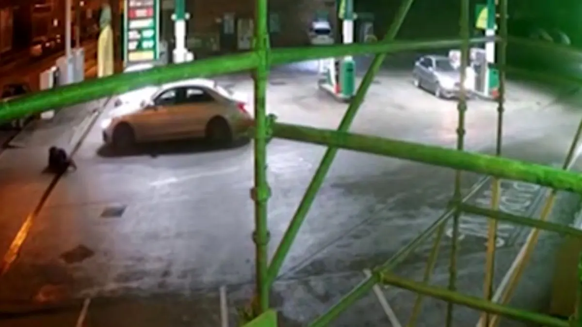 تصادف با عابر پیاده در پمپ بنزین + فیلم