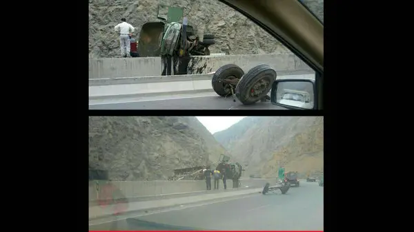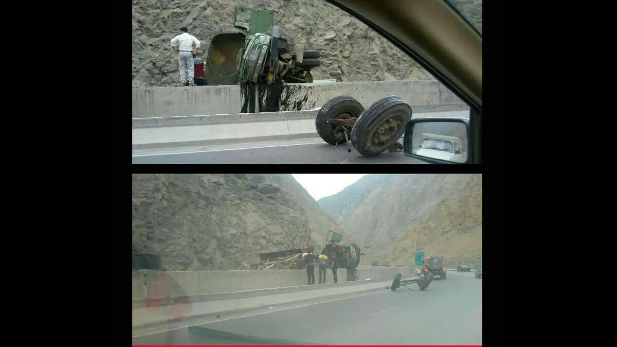 واژگونی کامیون در هراز به خیر گذشت + عکس
