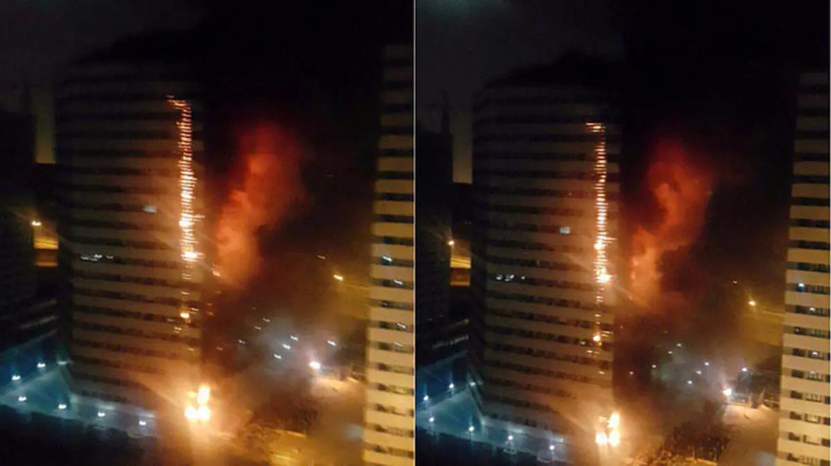 فیلم لحظه آتش سوزی در برج ۲۰ طبقه پامچال دریاچه چیتگر + عکس