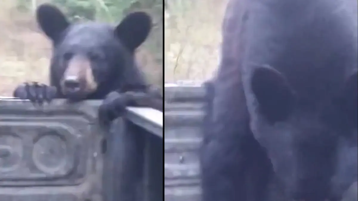 رکنا: یک خرس کوله پشتی یک مرد را از پشت ماشینش دزدید.