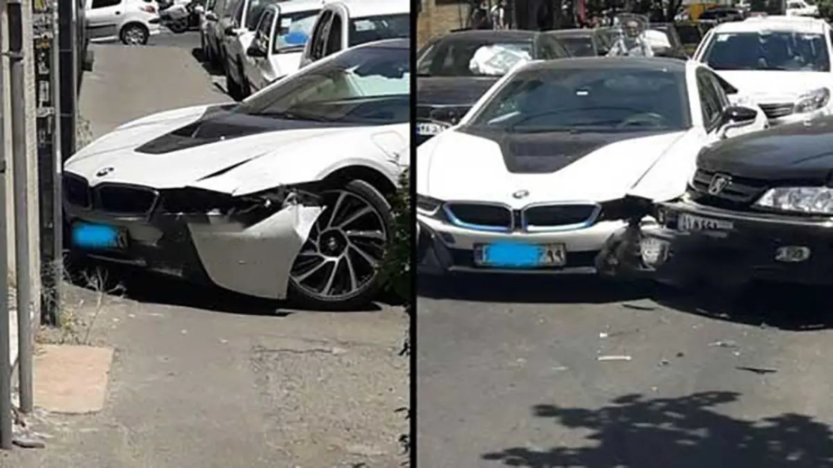 رکنا: تصادف یک پژو پارس با BMW i8 که حدود یک میلیارد تومان قیمت دارد.