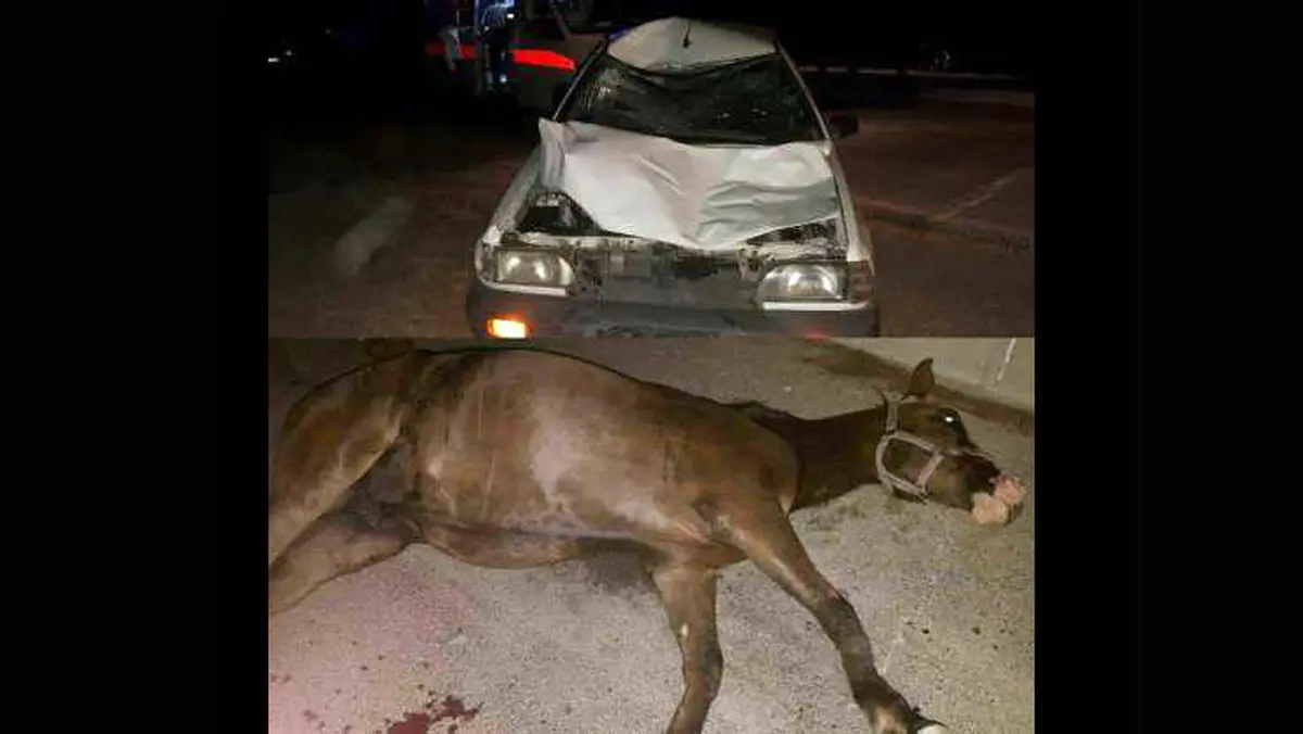 رکنا: پراید در شهرستان مبارک پس از برخورد با اسب جان حیوان را گرفت.