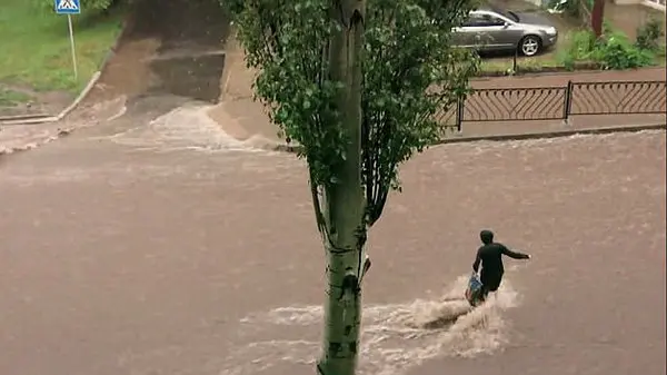 تصاویر منتشرشده از این سیلاب دیده می شود که چطور یک زن تلاش می کند خود را از سیلاب موجود در خیابان نجات دهد اما سرعت آب به حدی است که این زن را با خود می برد.