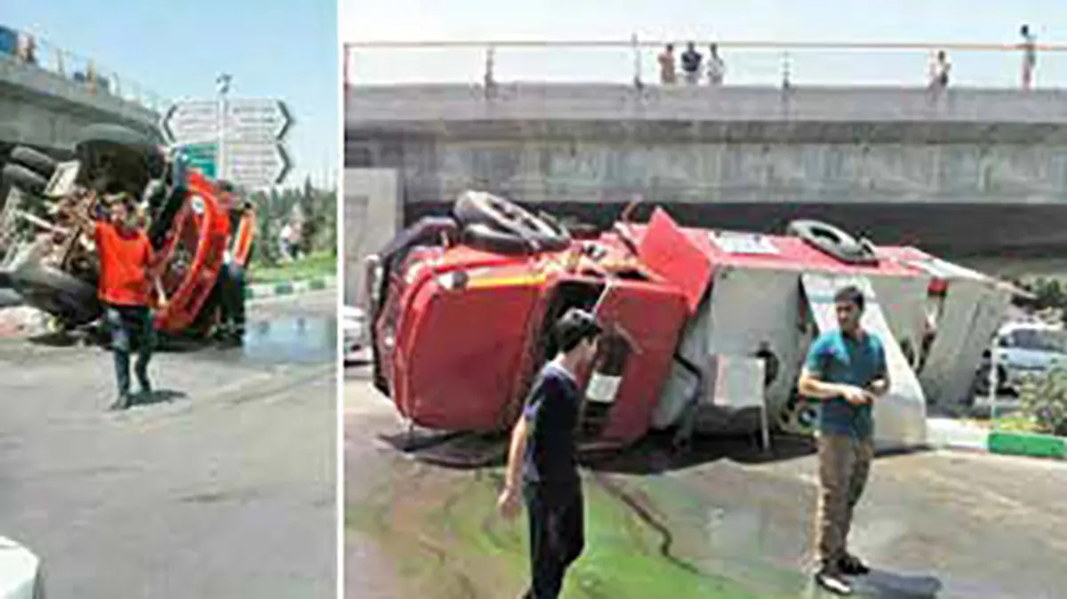 واژگونی خودروی آتش نشانی در مسیر عملیات در جمهوری