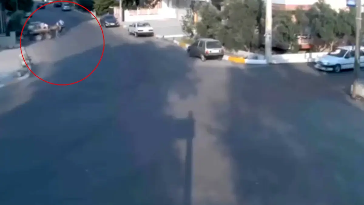 ضربه سر اسب به یک موتورسوار وسط خیابان +فیلم