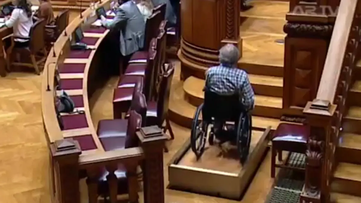 سقوط یک معلول از آسانسور در دادگاه + فیلم