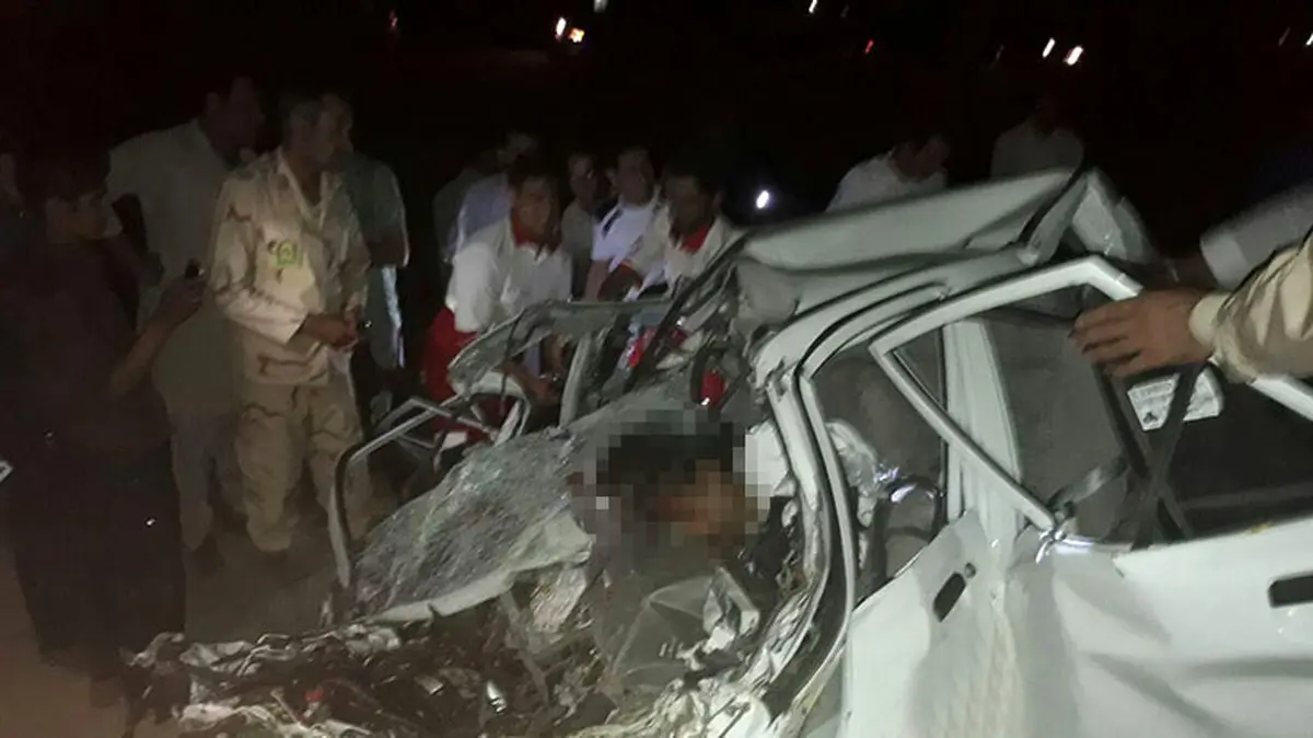 تصاویر مرگ دلخراش 5 سرنشین پراید در تصادف هولناک با اتوبوس