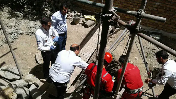 سقوط سنگ برزگ روی مقنی چاه در نیشابور