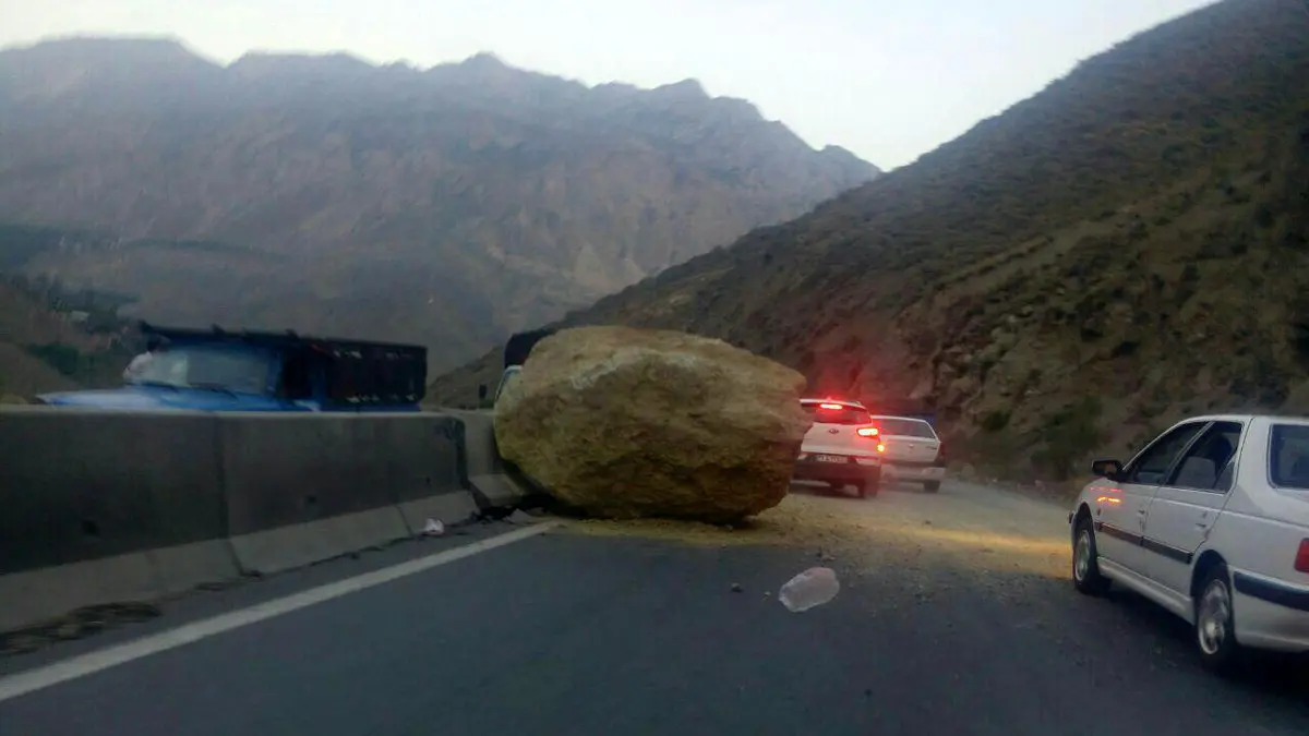 سقوط هولناک سنگ بزرگ در محور هراز + عکس