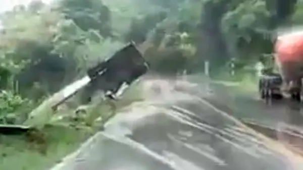 راننده یک دستگاه تریلی در جادهای کوهستانی در تایلند که به دلیل بارش باران خیس و لغزنده شده بود، کنترل خودرو را از دست داد و در دره سقوط Fallکرد.برای ورود به کانال تلگرام ما کلیک کنید.