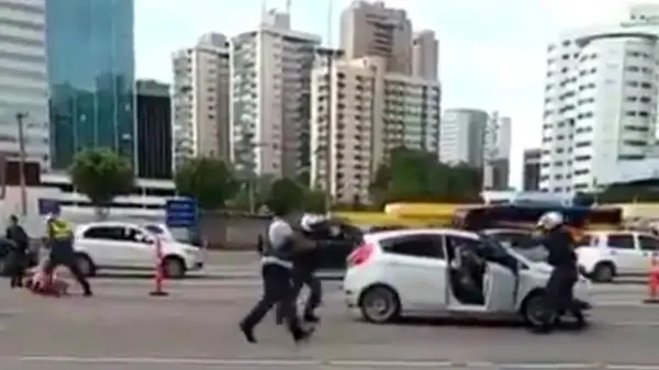 رکنا: پلیس برزیل سارقانی را که تحت تعقیب بودند را در یکی از خیابان های پر تردد این کشور دستگیر کردند.