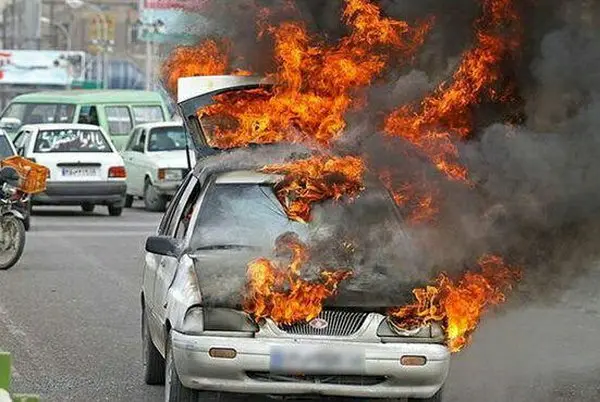 نجات سرنشینان پراید گداخته از میان آتش و دود /در کرمانشاه رخ داد
