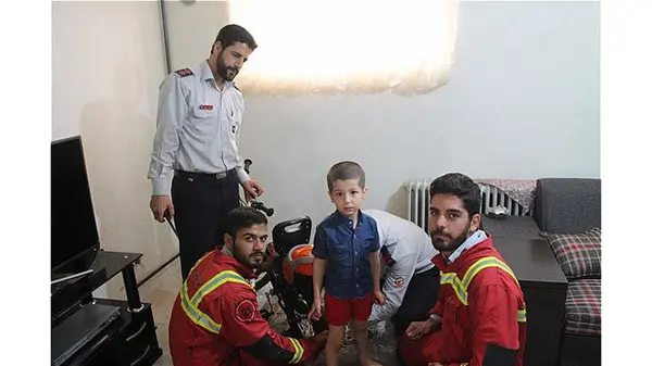 رکنا: پسربچهای که انگشت دستش بین زنجیر و چرخ دنده دوچرخه گیر کرده بود، توسط نیروهای آتشنشانی نجات داده شد.