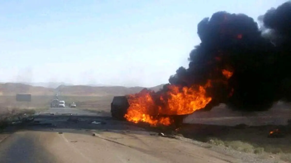 در تصادف وانت نیسان و تانکر سوخت راننده و سرنشین تانکر در شعله های آتش جان باختند+تصاویر