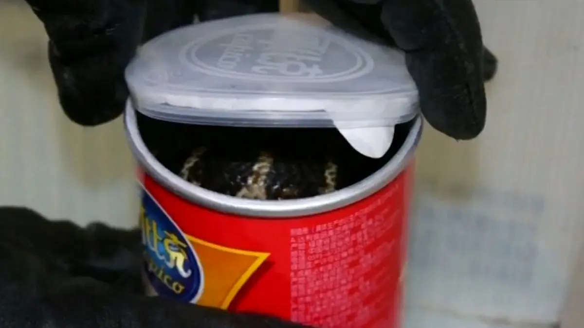 3 مار شاه کبرا در قوطی چیپس جاساز شده بود! +فیلم