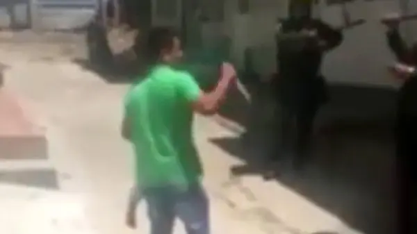 این مرد برای رهایی از محاصره پلیس، در حالی که چاقوی بلندی در دست داشت کودکی که در نزدیکی اش بود را به گروگان hostage میگیرد .دو افسر پلیس در حالیکه جلیقه ضد ضربه به تن داشتند آرام آرام به سمت مرد میروند و با ترفندی او را نقش زمین میکنند.