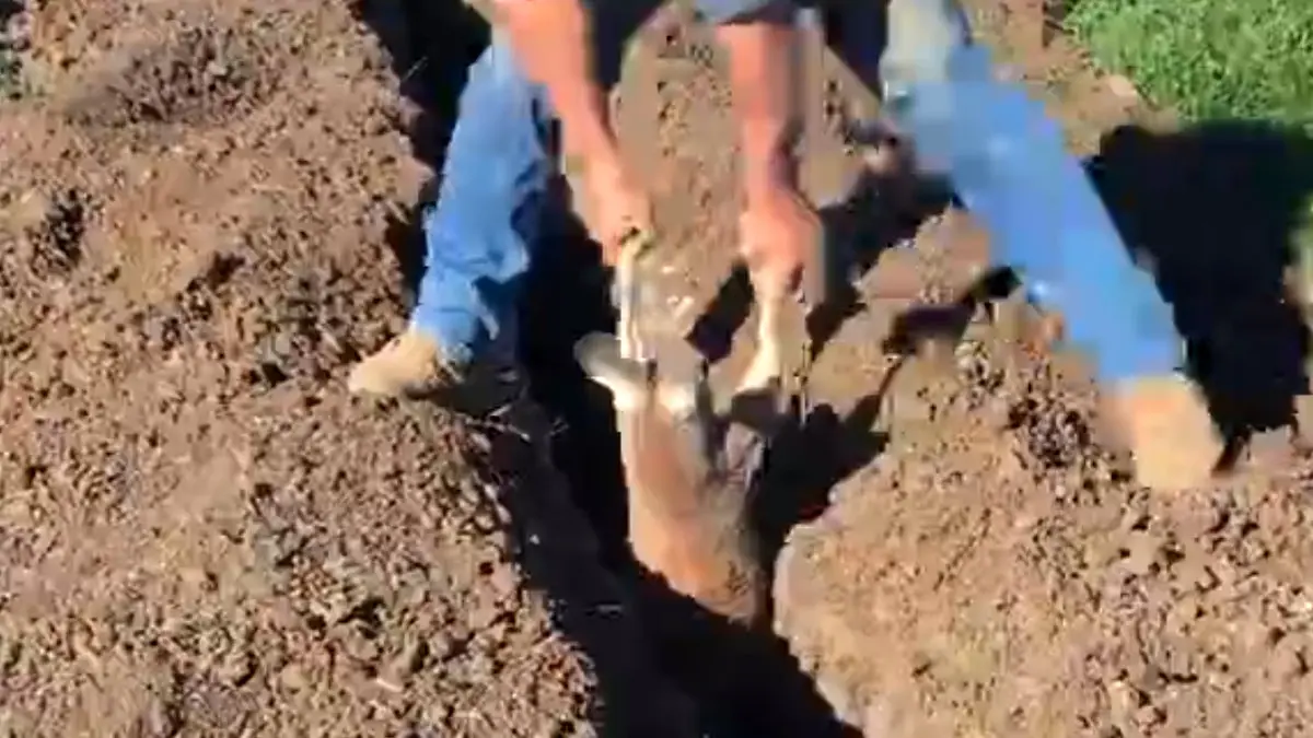 رکنا: یک کشاورز کانگورویی را که در کانال لوله آب گیر افتاده بود، نجات داد.