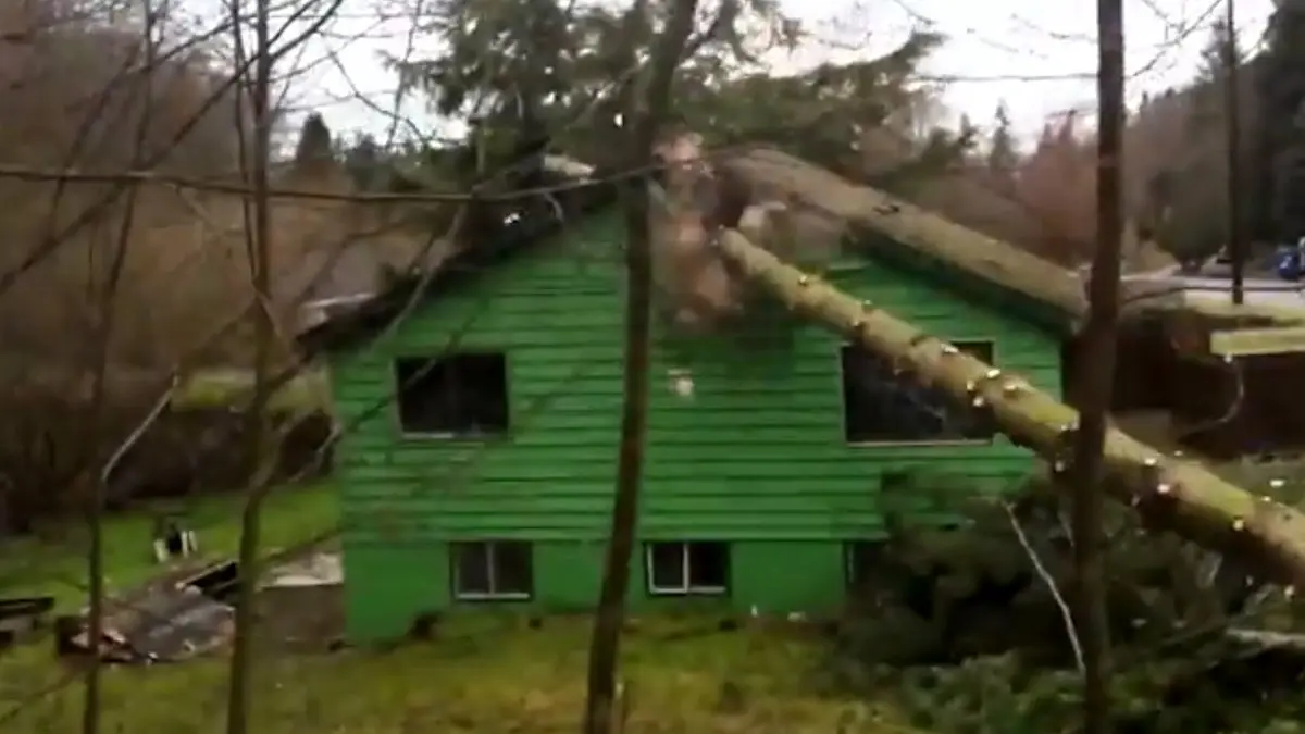 در ویدئو دیده می شود که دو مرد با اره در حال بریدن درختی بزرگ هستند اما درخت در جهتی اشتباه روی سقف خانه همسایه می افتد و آن را خراب می کند.