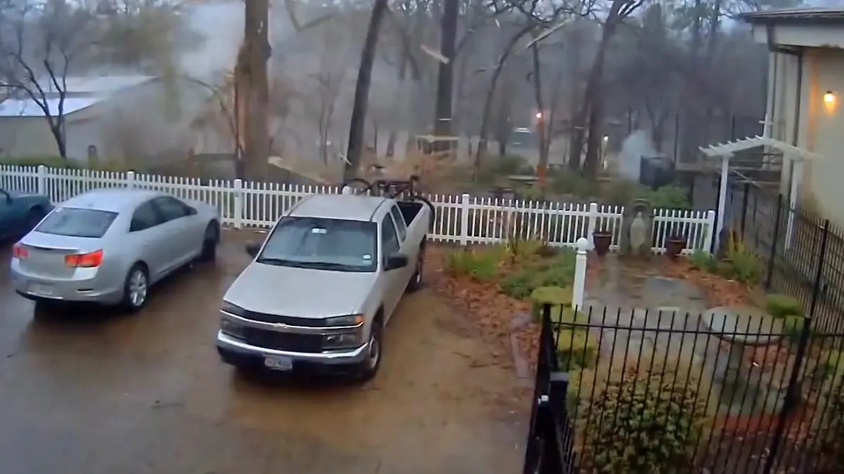 ویدئویی که از دوربین مداربسته حیات یک خانه منتشر شده است، صحنه انفجار یک درخت پس از برخورد با صاعقه را نشان می دهد. این درخت به طرز ناباورانه ای بعد از این برخوردبه تکه های کوچکی تقسیم می شود و بر روی زمین پخش می شود..برای ورود به کانال تلگرام ما کلیک کنید.