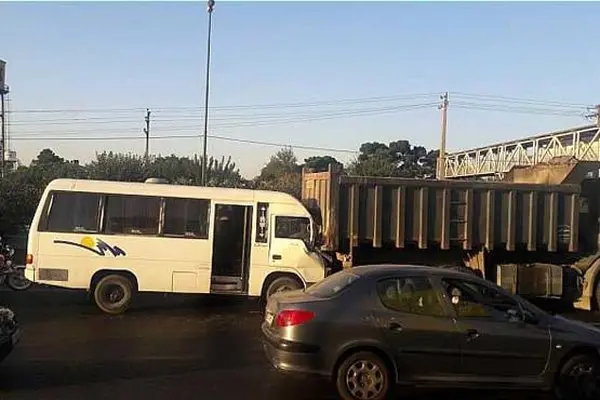 تصادف شدید مینی بوس و کامیون در بزرگراه آزادگان تهران +عکس