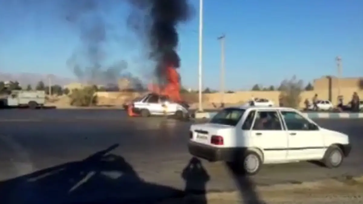 آتش گرفتن یک پراید پس از تصادف + فیلم لحظه آتش