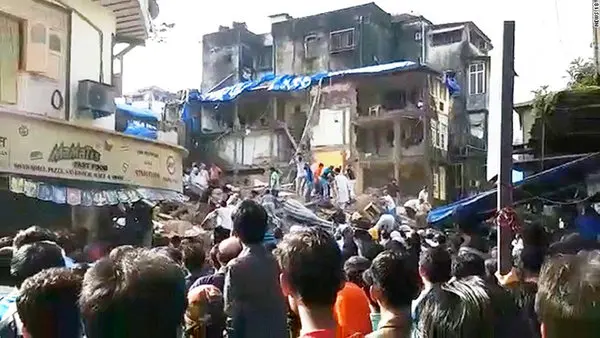 شبکه سی ان ان گزارش داد که نیروهای امدادرسان در تلاش هستند تا افراد زیر آوار مانده را از زیر این ساختمان سه طبقه در شهر بمبئی خارج کنند.