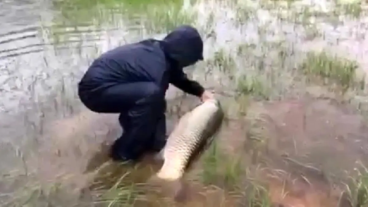 رکنا: یک مرد ماهی غول پیکری را که به دلیل وقوع طوفان، از دریاچه خارج شده بود، از مرگ نجات داد.