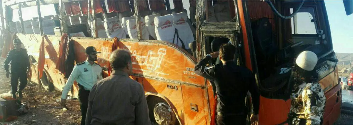 اولین تصاویر از واژگونی مرگبار اتوبوس دانش آموزان دختر در جاده شیراز / 12 کشته و 33 مجروح