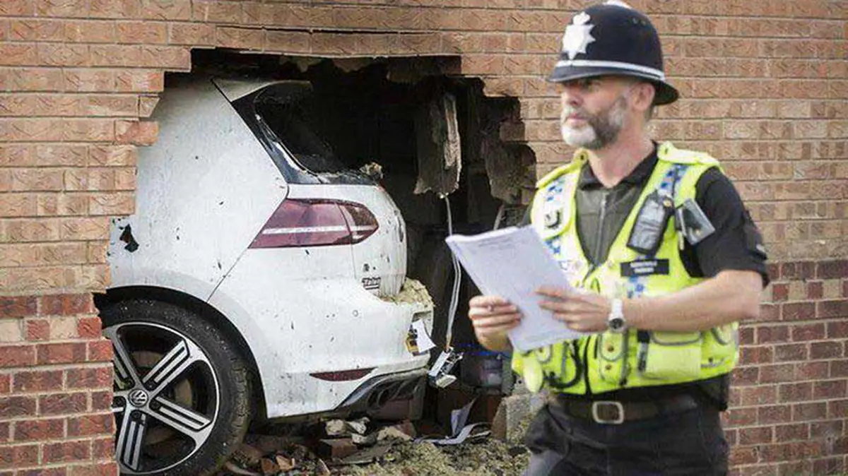 رکنا:فولوکس واگن با دیوار خانه ای تصادف کرد که باعث ریختن دیوار خانه شد و خودور داخل منزل خانواد ای انگلیسی رفت.
