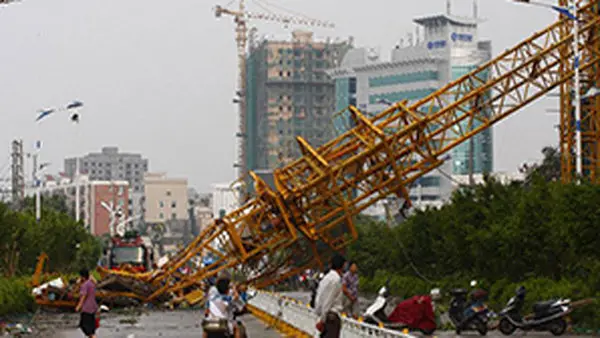 طوفان قدرتمند باعث سقوط جرثقیل شد + فیلم