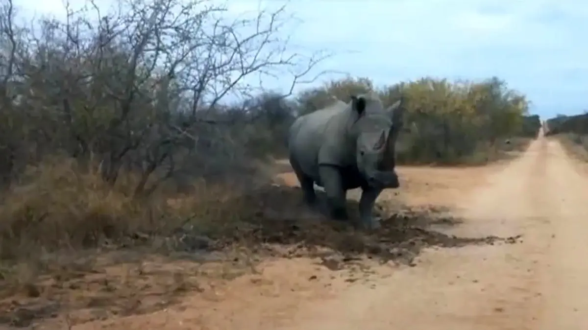 حمله کرگدن وحشی به ماشین در حال عبور + فیلم