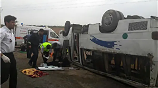 واژگونی خونین مینیبوس «هیوندا» در جاده کرمانشاه-هرسین
